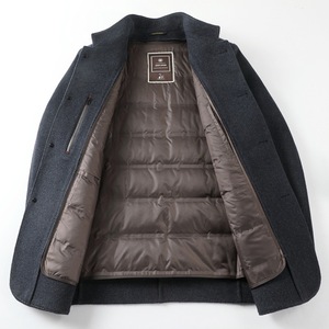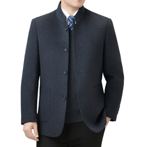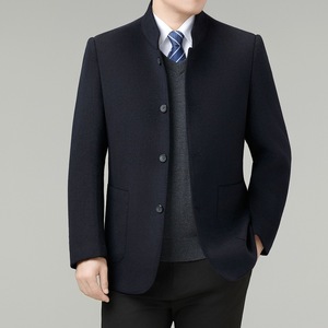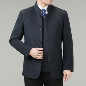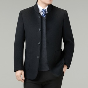秋冬季羊毛呢中山装男士上衣中年爸爸商务休闲立领双面呢西装外套