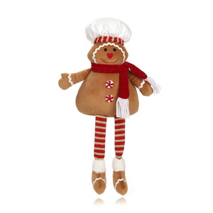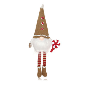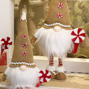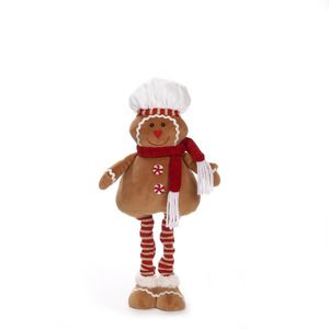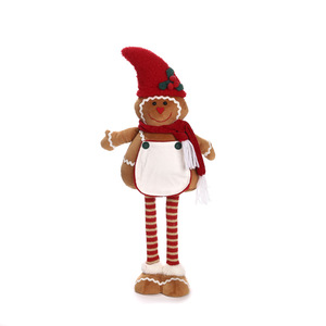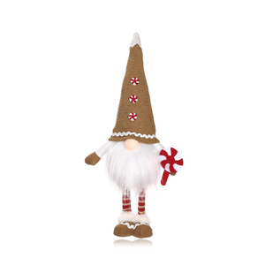 圣诞可伸缩姜饼人公仔布艺格子长腿无脸老人圣诞装饰桌面摆件玩偶