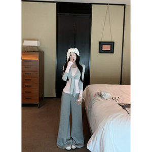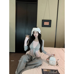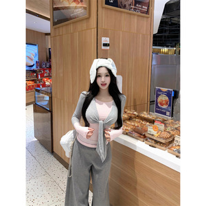 昕可达 时髦套组 假两件长袖tee空气层宽腰针织裤