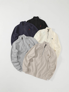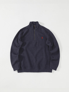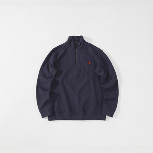 跨境外贸秋冬R*L拉夫小马标卫衣男女半拉链立领纯棉纯色刺绣长袖