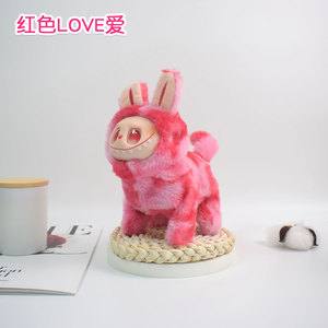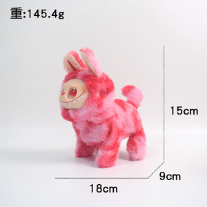 毛绒电动拉布狗玩具狗毛绒通硅胶脸发光会跑会唱歌礼物labubu狗