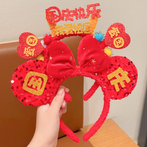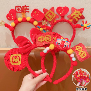 国庆头饰节日氛围2025新款中国风五星红旗头箍中国梦红色可爱发饰
