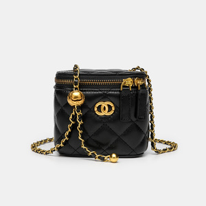 真皮小香风菱格链条包包女小方包双金球盒子包高级感单肩斜挎小包