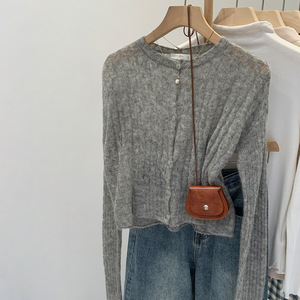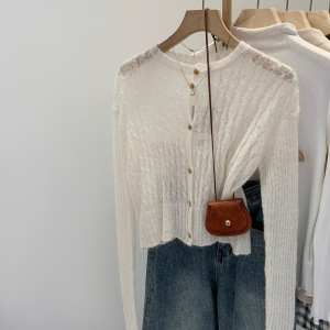 设计感薄透绞花毛织外套羊毛针织开衫女装潮韩版早秋2025新款上衣