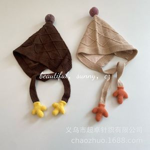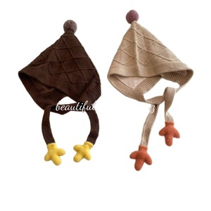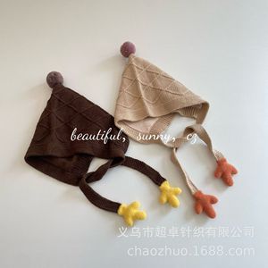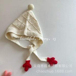 秋冬氛围感女童护耳球球小手手毛线帽儿童巫师帽