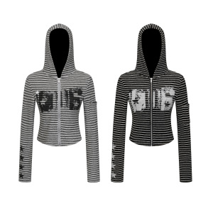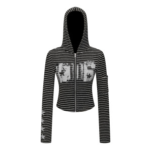 Fudge Pink 25秋季New美式复古辣妹个性条纹设计连帽卫衣开衫