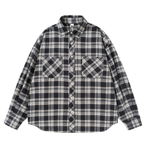 日系cityboy廓形文艺青年格纹长袖衬衫男女宽松vintage工装衬衣潮