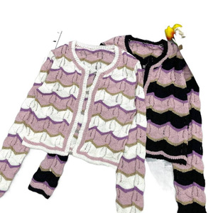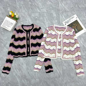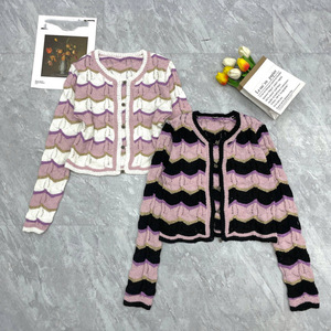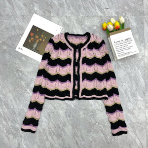 25年秋季新款香家logo扣间条撞色针织长袖单排扣开衫宽松百搭上衣