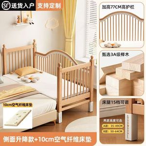 榉木儿童拼接床婴儿拼接床儿童床大床升降护栏加宽床边宝宝小床