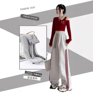 美式斜扛卫裤女2025秋季高腰脚口抽绳休闲直筒长裤辣妹灰色运动裤