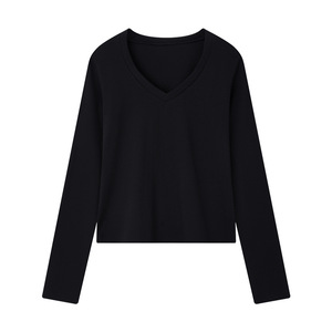 纯色V领正肩长袖T恤女秋冬新款辣妹修身显瘦休闲内搭女生打底上衣