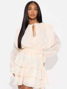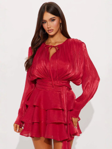 欧美跨境2025法式法式系带抽褶设计蛋糕裙短裙款短款连衣裙女装