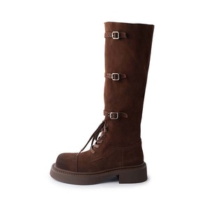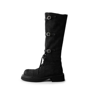 长筒靴女秋冬不过膝英伦风设计感粗跟长靴高筒骑士靴