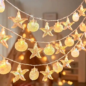 太阳能LED七彩海星贝壳炫彩星星灯串造型装饰灯串节日布置氛围灯