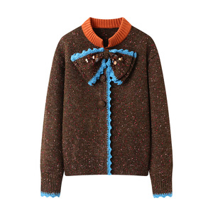 2025秋季新款女时尚复古撞色廓形针织蝴蝶结开衫毛衣LF25Q51ZC119