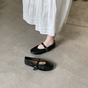 法式平底晚晚风复古圆头一字扣带玛丽珍小皮鞋百搭通勤芭蕾单鞋女