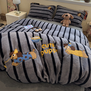 可爱小象~ins卡通兔兔绒毛巾绣四件套加厚冬天双面牛奶绒床单被套