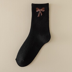 袜子女秋冬季加厚保暖蝴蝶结毛圈女袜加绒地板袜睡眠袜厂家批发