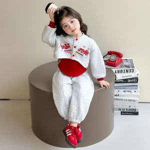 女童春秋假两件卫衣套装2025新款儿童字母印花卫裤女孩休闲两件套