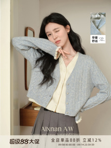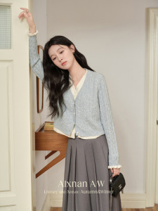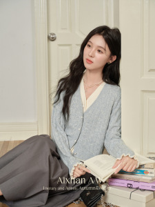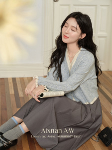 鹿向南「蓝铃语」假两件慵懒风v领毛衣外穿2025秋冬新款开衫外套