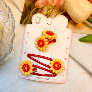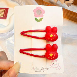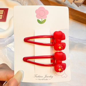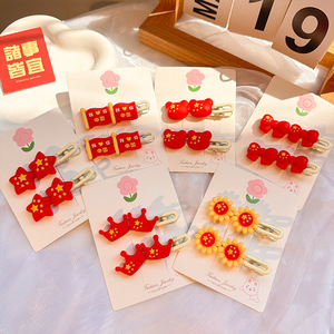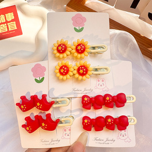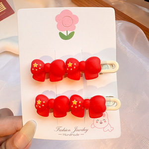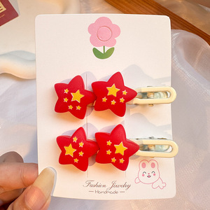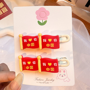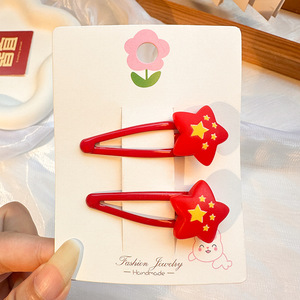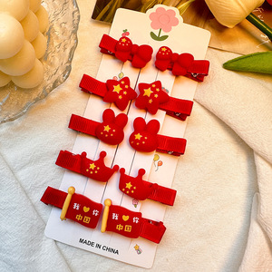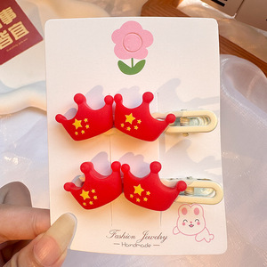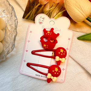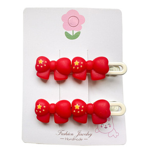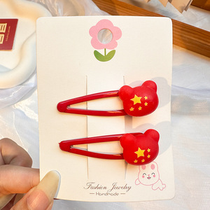 国庆节红色五角星发夹儿童发卡可爱氛围感侧边夹套装太阳皮筋发饰