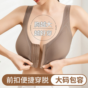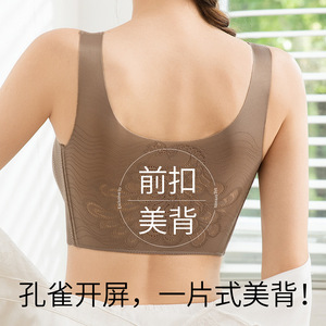 无痕前开扣大码美背内衣女透气聚拢上托防下垂收副乳妈妈文胸哺乳