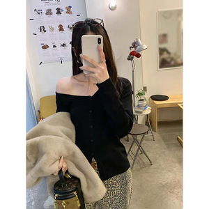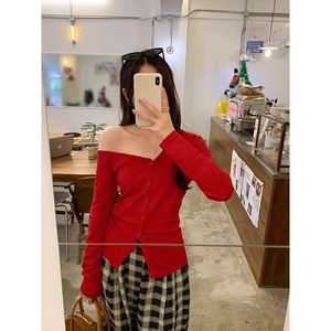 魔西女王气质斜肩修身内搭羊毛打底衫女2025秋冬季高级感辣妹上衣