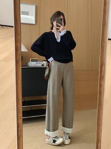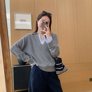定制工厂秋冬新款内穿外搭假两件针织上衣拼接polo领针织衫打底衫