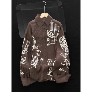 法式小资上衣早秋女装2025新款高级感巨好看咖色印花长袖衬衫外套