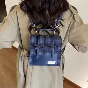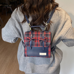 2025秋冬新款洋气撞色小背包女士时尚双肩包学院风蝴蝶结手提书包