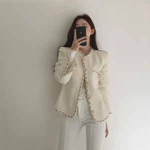 黑色粗花呢金丝复古西装外套新款女秋冬小个子休闲百搭短款上衣