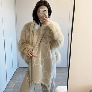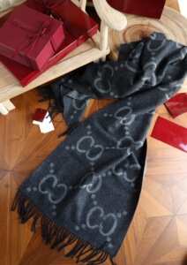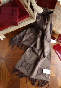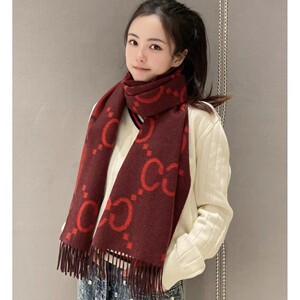 经典提花双面流苏围巾羊绒圆领披肩女男gg字母长款围脖百搭保暖