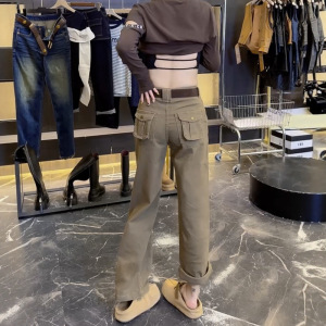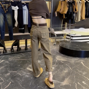 大码2025年早秋新款窄版直筒牛仔裤女洋气百搭小个子阔腿拖地长裤