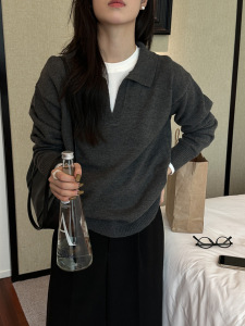法式慵懒风POLO领时尚针织衫女秋冬新款高级感气质减龄打底衫毛衣
