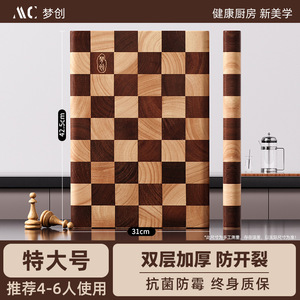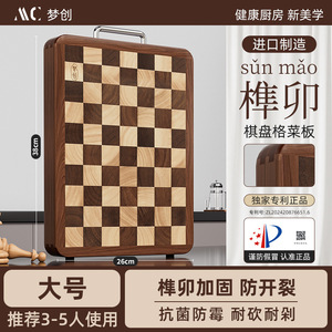 梦创榫卯棋盘格乌檀菜板抗菌防霉家用食级实木厨房用砧案板切菜板