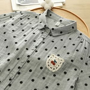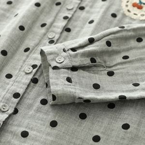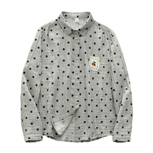 早秋新品 波点印花蕾丝刺绣衬衫 女翻领长袖双层棉纱衬衣宽松上衣