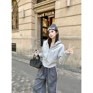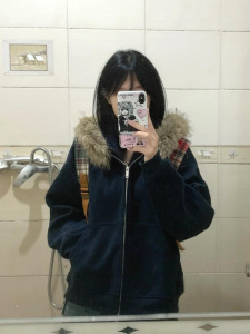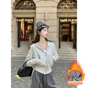 加绒连帽卫衣女毛领外套女秋冬季修身短款上衣2025新款大衣内搭