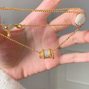 轻奢风S925藤编路路通项链女小众时尚满镶锆石工艺高级感项链