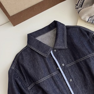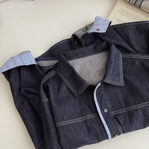 2025早秋棉拼接撞色简约休闲牛仔衬衫女宽松休闲百搭上衣外套