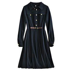2025年早秋季新款工装女装秋冬赫本风复古Polo长袖衬衫连衣裙子