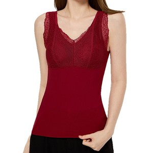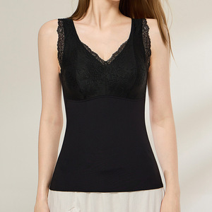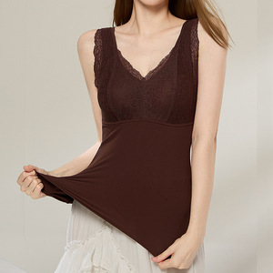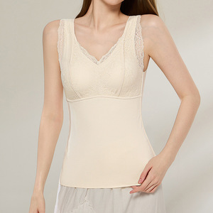 蕾丝发热保暖背心女带胸垫免穿文胸提拉固定杯大码秋冬新款打底衣