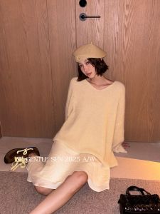 秀熙熙2025秋季新款白标宽松长袖V领针织衫上衣兔毛毛衣女25363