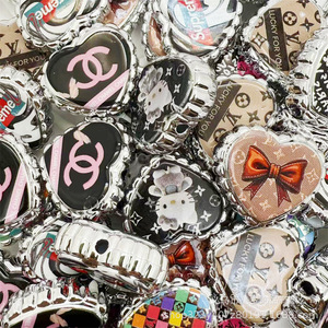 镀uv双面印花大牌小香风爱心通孔串珠 DIY手机链包链发绳饰品配件