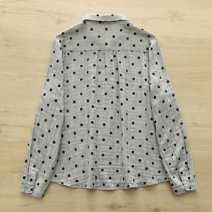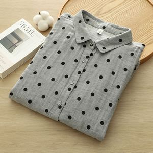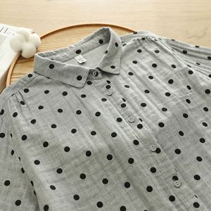 厂家直销 日系复古波点印花文艺全棉双层纱衬衫女 棉纱娃娃领衬衣