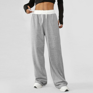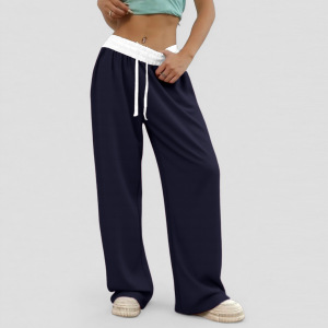 跨境撞色抽绳女装阔腿休闲宽松运动裤舒适欧美个性街头春季新款女