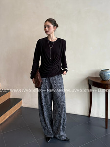 JVV十三行2025秋季新款老钱风腰果垂感长裤百搭阔腿休闲裤女71285