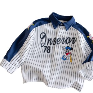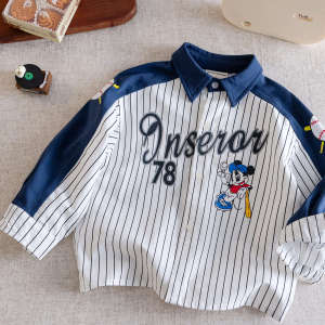 儿童条纹衬衫2025春秋新款男童polo领上衣宝宝卡通休闲长袖衬衣潮