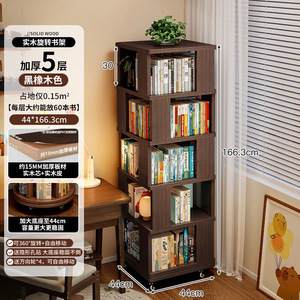 实木旋转书架360度落地移动置物架一体靠墙边小窄柜家用转角书柜