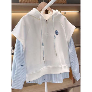 女童连帽卫衣春秋2025新款儿童假两件上衣韩版女孩休闲套头衫洋气