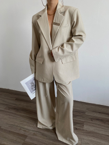 杏色条纹西装